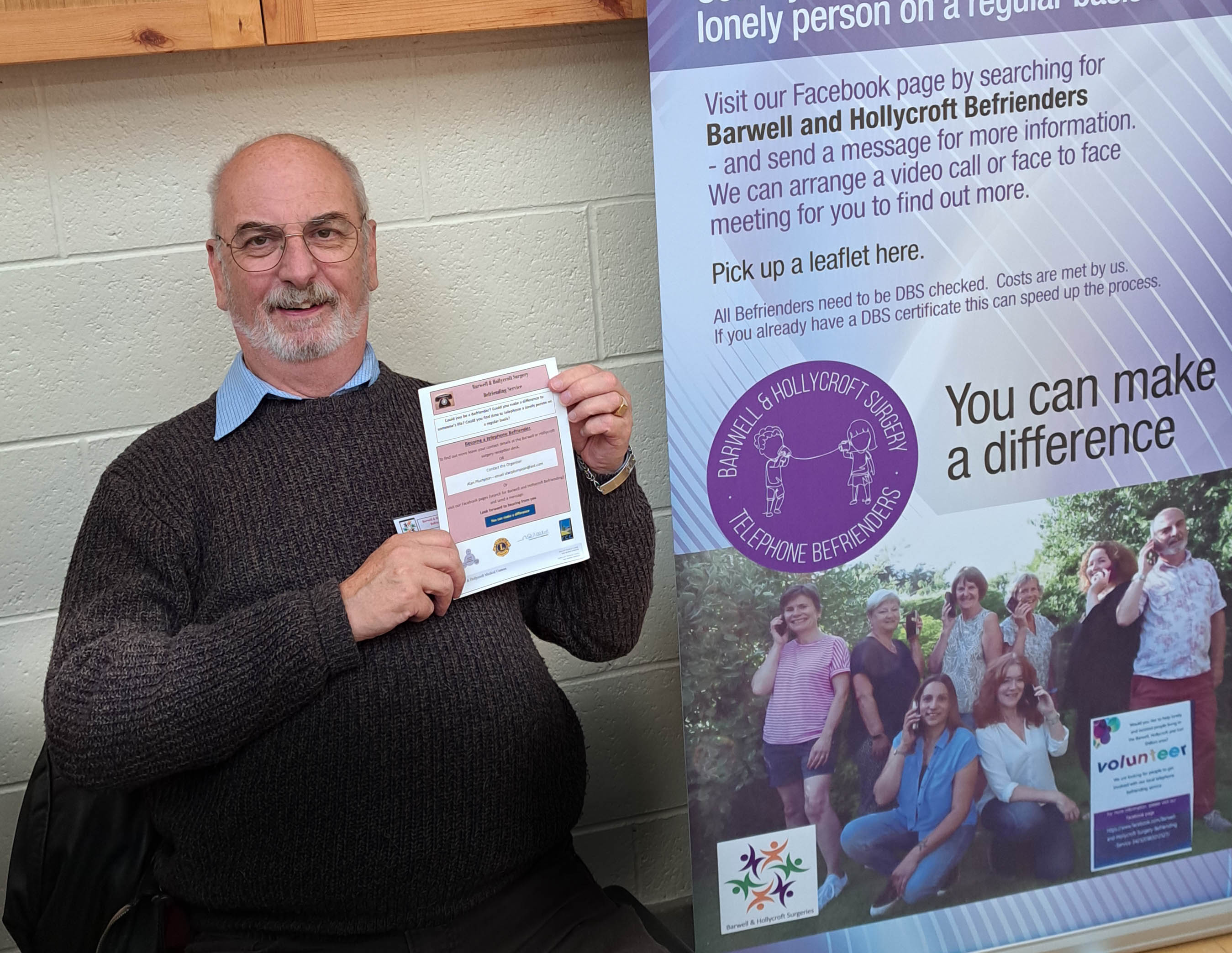 I now work closely with all the LAC’s in the Hinckley and Bosworth Area who refer people to us and they act as links and sign posters to supporting other people in need. I find it difficult to think of me doing any other role that gives me such satisfaction and a smile on my face. The Barwell and Hollycroft Telephone Befrienders would not exist if it had not been for those initial contacts which signposted us to help, support and funding. So a big thank you for all the help.
