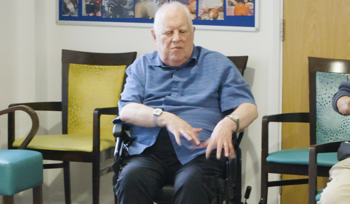 Malcolm is a resident at Oak Court. He is totally blind and has slight hearing loss. He has lived in the Oak Court scheme for four years to give him more independence.
